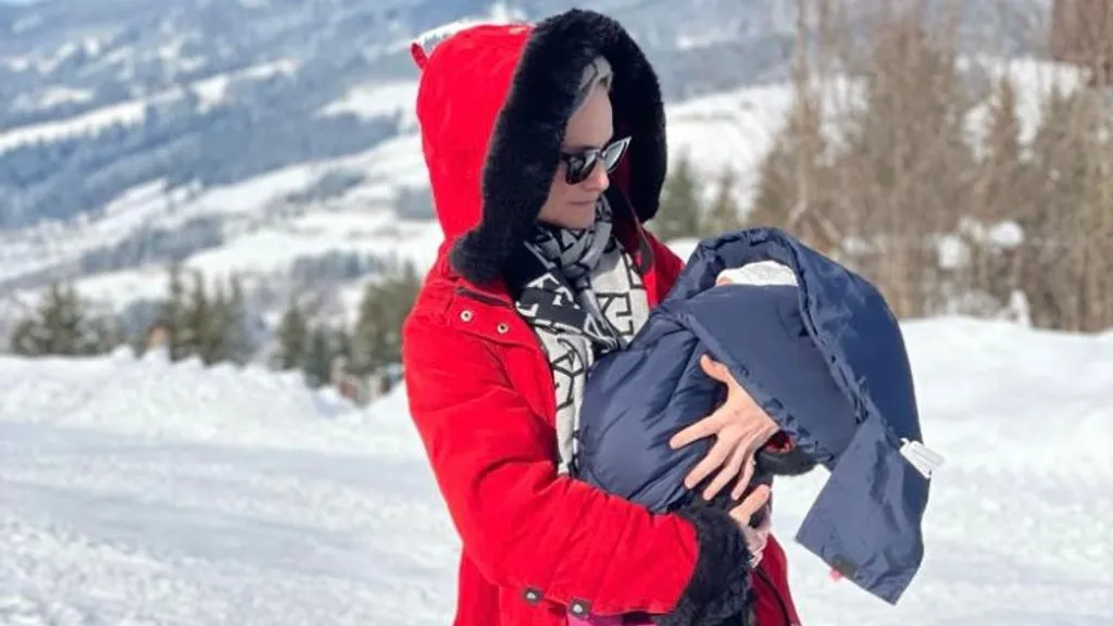 Mirjam und ihr Sohn Vinzent im Schnee.