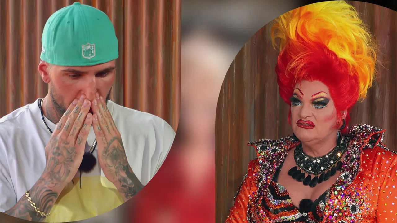 Olivia Jones empfängt Diogo mit einem Blick, der keine Ausreden zulässt: "Diogo, also wenn ich dich sehe, denk ich immer: wow. Echt Kunst. Man sieht, Tätowieren ist dein Ding. Aber sag mal, auf wen läuft’s denn diesmal hinaus?"