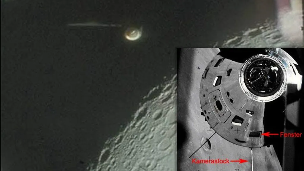 Diese Aufnahme von der Apollo-16-Mission erregte die UFO-Gemeinde ganz besonders. Verbargen sich Alien-Raumschiffe hinterm Mond? Erst eine Bildanalyse Jahrzehnte später ergab: Es war nur die Kamerahalterung des Raumschiffs.