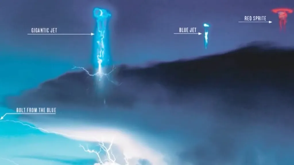 Typen von Blitzen in der hohen Atmosphäre