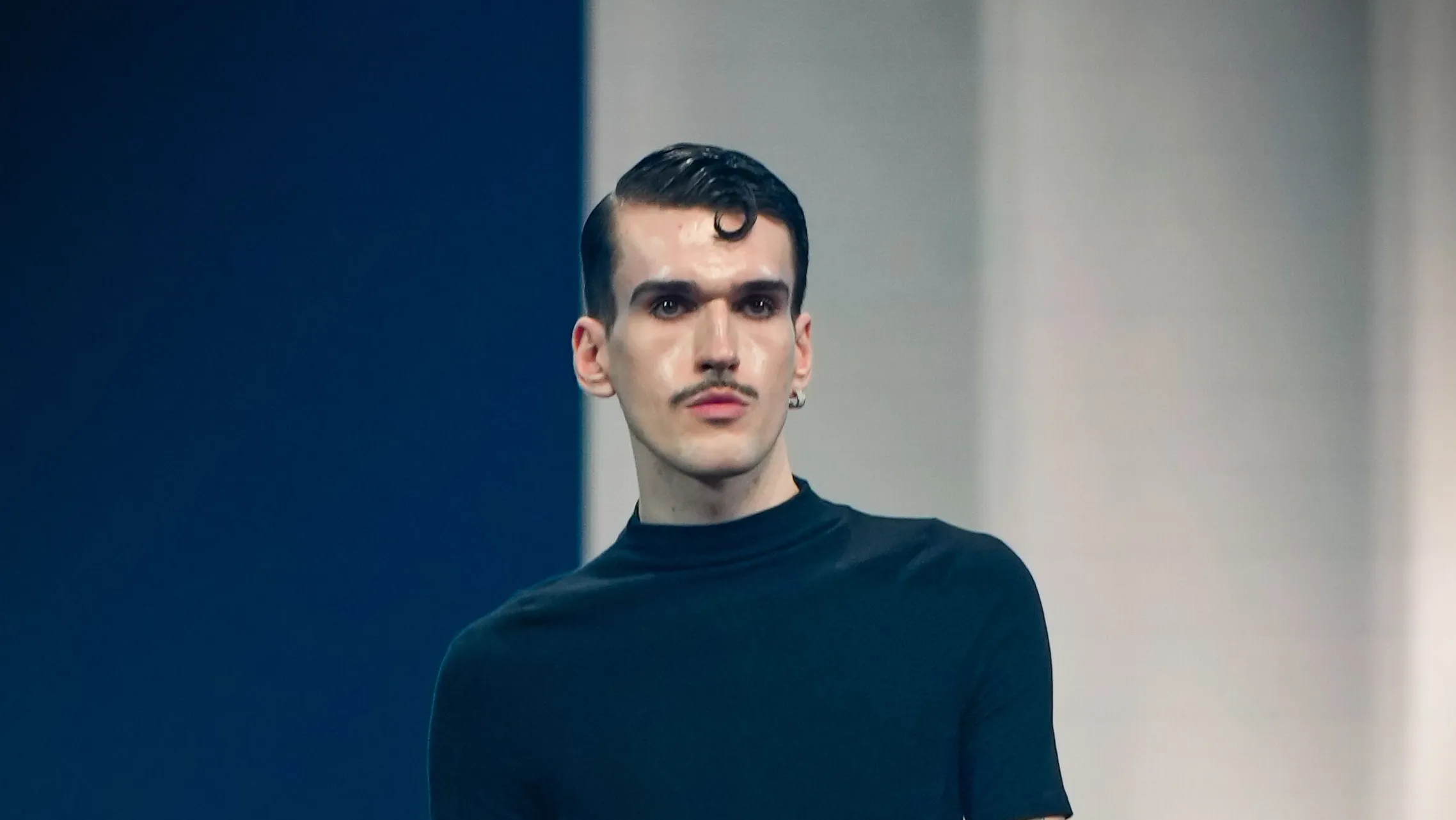 Schon vor seinem Runway-Auftritt macht der ausgebildete Zerspanungstechniker im Backstage-Bereich deutlich, was sein Plan ist.