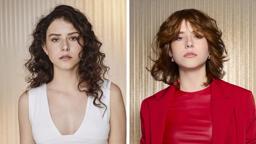 Antonia im Vorher-nachher-Verglich. Der kurze kupferfarbene Wolf Cut hat deutlich mehr Pep als ihr alten braunen Locken!