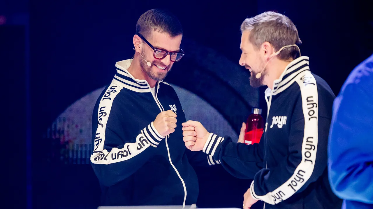 "Joko & Klaas gegen ProSieben" beschert dem namensgebenden Entertainer-Duo häufig unangenehme Strafen. In Folge 5 blieb es da verhältnismäßig gemütlich: Weil sie in der vorherigen Woche eindeutig verloren hatten, mussten sie als Joyn-Maskottchen an den Start gehen -  Trainingsanzug, Jacke und Kappen inklusive.