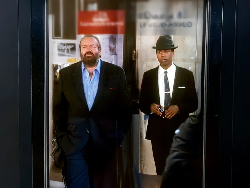 Mit dem zweiten Filmzyklus ändert sich der Ton der Reihe. Michael Winslow - genau, die lebende Soundmaschine aus "Police Academy" - übernimmt als neuer Partner und bringt eine ganz andere Energie ins Spiel. Wo Staffel 1 noch stark vom "Miami Vice"-Vibe geprägt war, wird es jetzt leichter und deutlich humorvoller. Winslows Talent für Geräusche und Comedy sorgt für mehr Gags, während Bud Spencer als ruhiger Gegenpol die Erdung liefert. Die Fälle bleiben spannend, werden aber lockerer erzählt, was mehr Raum für schräge Situationen bietet.